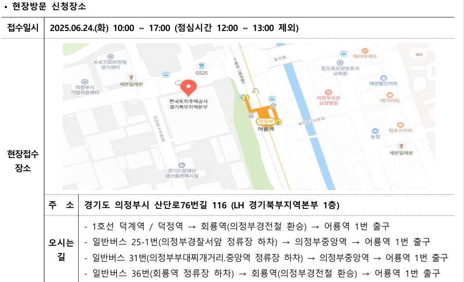 (점심시간(12시~13시) 제외) - 현장 접수 장소 : LH경기북부지역본부 1층