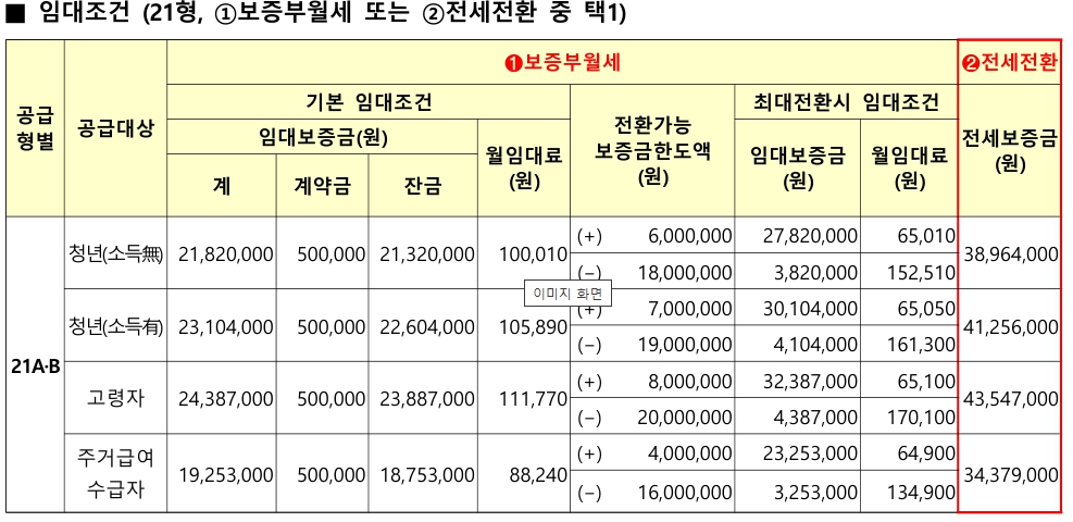 4-2. 임대조건 (21형, ①보증부월세 또는 ②전세전환 중 택1)