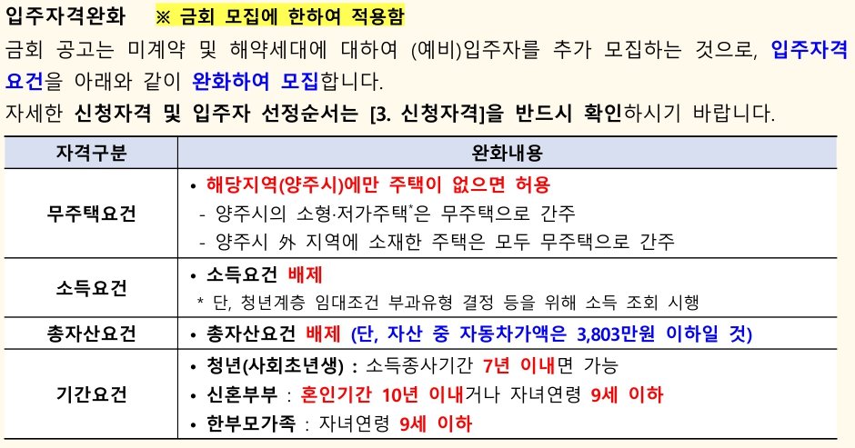 이번에 양주회천 행복주택 예비입주자 추가 모집이 진행되며, 기존 청약 요건보다 완화된 조건으로 신청이 가능합니다.
