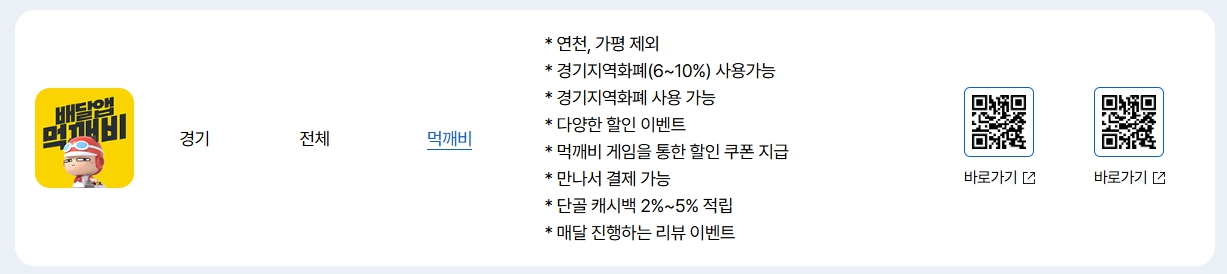 | 먹깨비 | 경기 전역 | 게임 통한 할인쿠폰 지급, 지역화폐 사용 가능 |