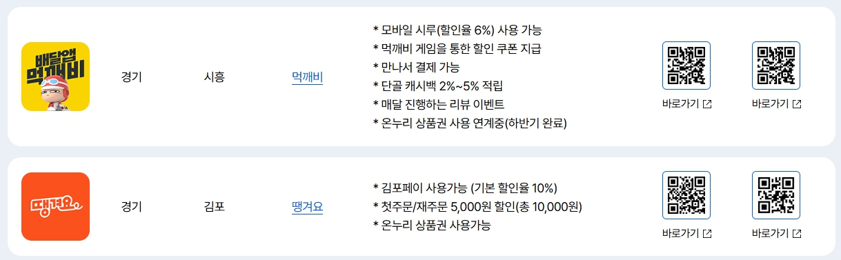 | 배달특급 | 경기 전역 | 경기지역화폐 사용 + 추가 5% 쿠폰 |